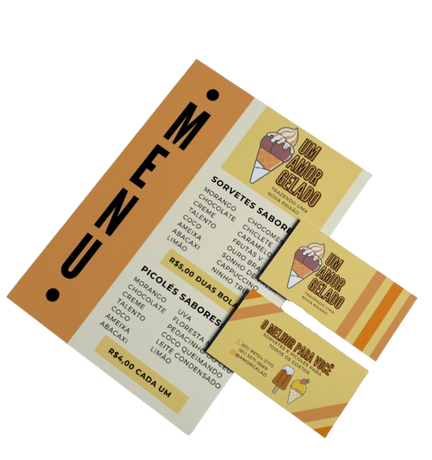 Produzimos, além de materiais para as mídias digitais, artes que podem ser impressas e servir para as mais diversas aplicações, como adesivos, cartões de visita, cardápios e panfletos.